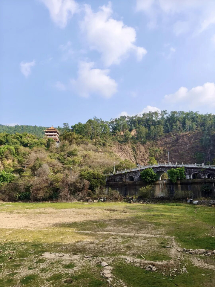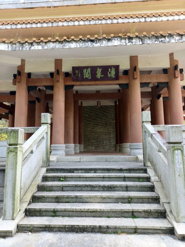 桃花岛下方马路往左边前行到明义桥,可以看到右对面山上濂泉阁,其实走过明义桥后下方有两条阶梯通往上山濂泉阁的,可惜封堵了上不去。