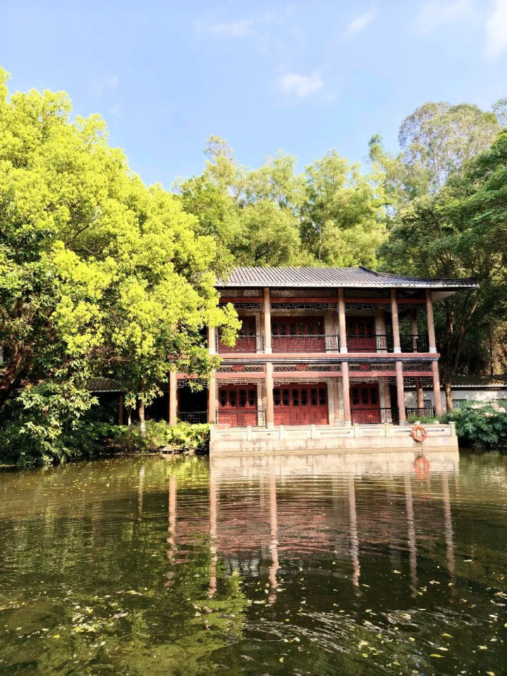 山林间还有不少亭台楼阁,像乘鹤亭、赏荷轩、濂泉阁王人是不雅湖、看景、拍照的好位置,站在其中一个可以看到另外两个。